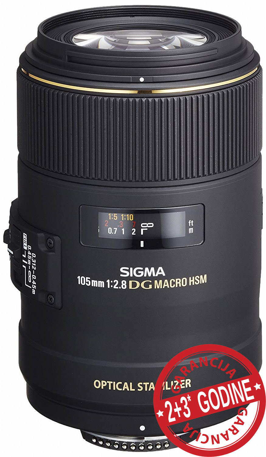 Ovaj makro objektiv velikog otvora blende nudi napredne performanse pri fotografisanju objekata iz blizine. Sigmin sistem optičke stabilizacije omogućava makro fotografisanje bez korišćenja stativa. Specijalna sočiva u objektivu (SLD - Special low dispersion) pružaju izuzetnu korekciju svih vrsta aberacija i distorzija. Plivajući sistem fokusa pomera dve različite grupe stakala u optičkoj putanji objektiva ka različitim pozicijama. Ovaj sistem kompenzuje astigmatske i sferične aberacije i pruža izuzetne optičke karakteristike od beskonačnog do 1:1 makro područja. Višeslojni premaz sočiva ( Super Multi-Layer Coating ) smanjuje odsjaje i pojavu takozvanih duhova, pružajući fotografije visokog kontrasta. Sigmin hipersonični motor omogućava tih i brz autofokus. Ovaj objektiv ima zaobljenu dijafragmu sa 9 listića i kreira atraktivno zamagljenje delova fotografije koji su van fokusa. Tehničke karakteristike : Konstrukcija sočiva : 16 elemenata u 11 grupa Ugao gledanja : 23.3º Broj listića dijafragme : 9 Minimalni otvor blende : f22 Maksimalna blizina fokusa : 31.2 cm Veličina navoja za filter : 62mm Maksimalno uvećanje : 1:1 Dimenzije (Prečnik x dužina) : 126.4 mm Težina : 725g