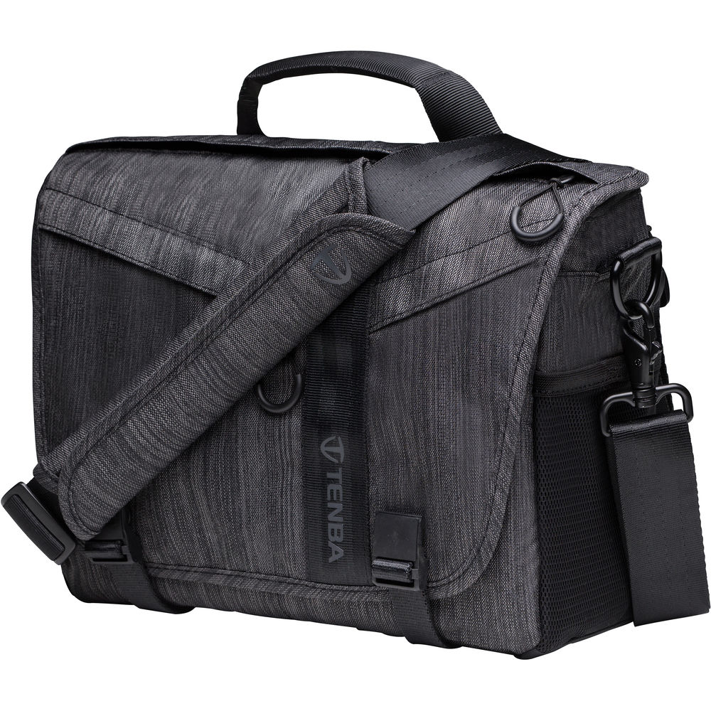 The graphite DNA 10 from Tenba is a versatile messenger bag that can hold a mirrorless camera with 3-5 lenses, or a DSLR with 2-3 lenses. The camera and lenses fit inside a removable padded insert in the main compartment, and a tablet up to 10" store inside a padded pocket on the bag's interior.